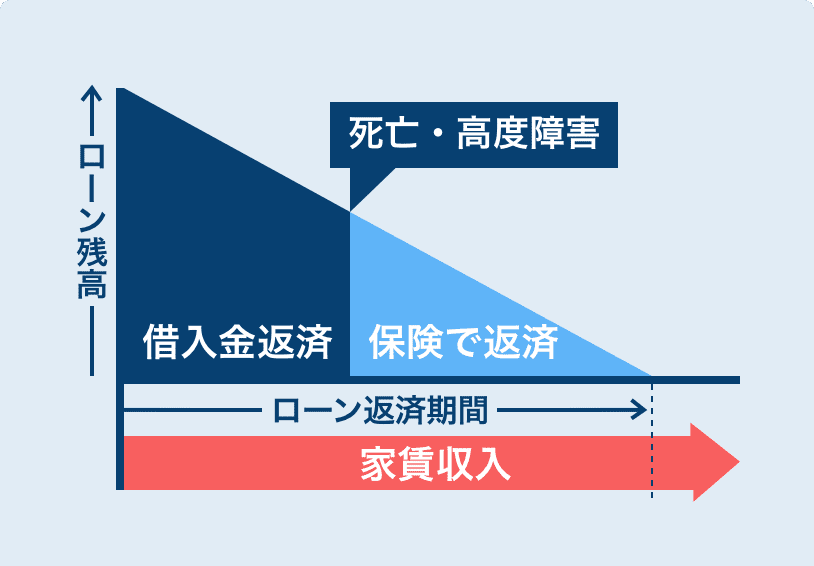 団体信用生命保険に加入すると、購入した本人が予期せぬ出来事で亡くなられた際、住宅ローンの残高はゼロとなり、ご家族の方はローン返済の心配なく建物を相続できます。